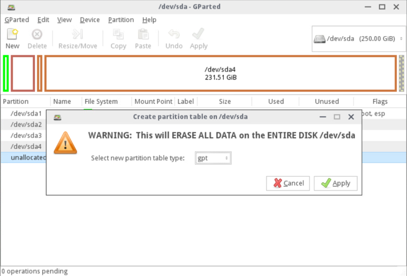 | current | 12:13, 28 October 2025 | 1,149 × 780 (151 KB) | Chris (talk | contribs) | Gparted - Device menu - Create partition table gpt |